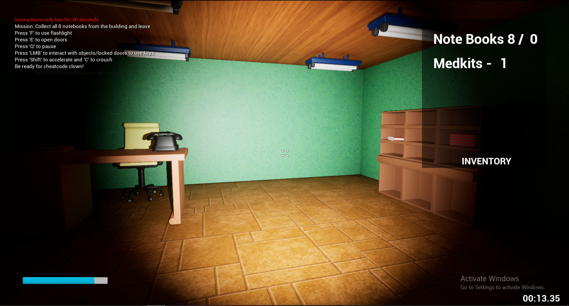 P.S: Reason why I named this project "Cheatcode Clown" was that this game had some bugs, that clown monster could catch you even if you're behind a thin walls. It was created as a challenge, and I couldn't fix it in time. Also there was a jumpscare animation after it catches you, unfortunately due to some bugs, it doesn't play.