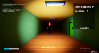 Is a small horror game, where you need to escape from a scary clown chasing you in a school. You should collect 8 notebooks to escape from exit. You can also find keys to unlock doors and medkits for extra lives you can get. Everything happens inside a dark school.